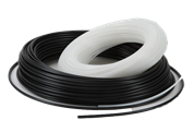 Tubo PA (Poliamida): utlizado por su resistencia y durabilidad. Tubo PU (Poliuretano), utilizado por su flexibilidad y adaptabilidad. Bitubo, dos tubos PA, en colores negro y azul.